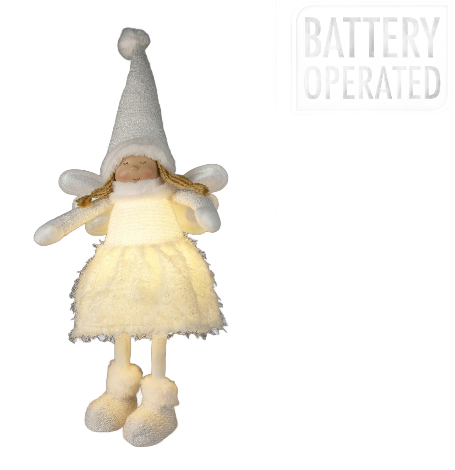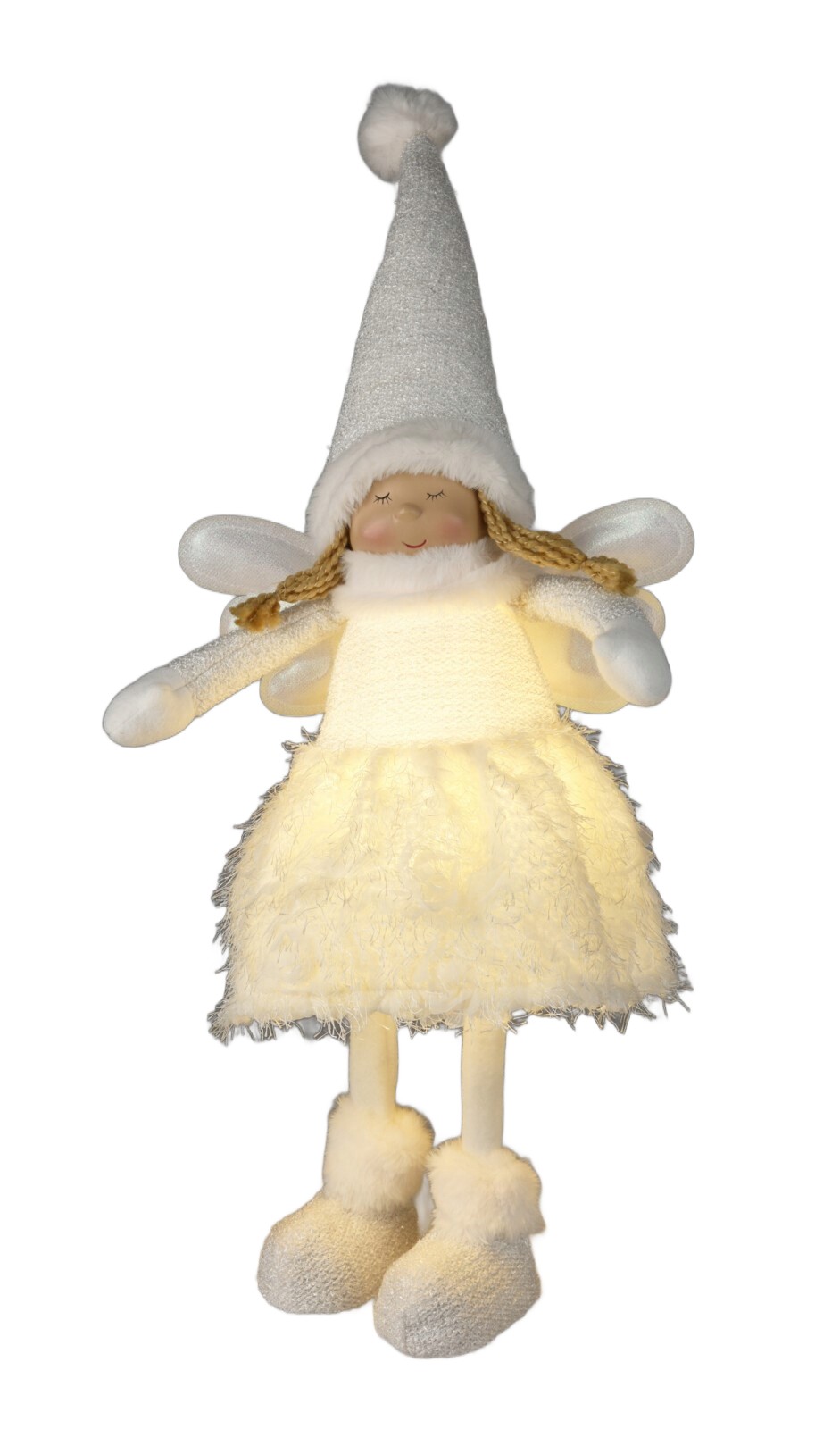 Aniołek stojący dziewczynka LED 69cm biały z oświetleniem dekoracyjnym do wnętrz