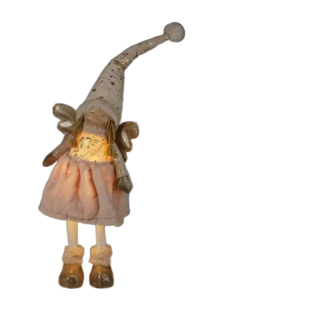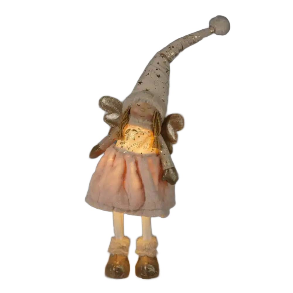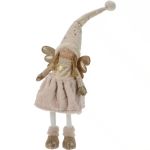 Aniołek stojący LED 69cm kremowo-złoty z tkaniny i żywicy poliestrowej do dekoracji