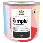 Beckers It's Simple to wodorozcieńczalna farba lateksowa przeznaczona do malowania ścian i sufitów wewnątrz pomieszczeń. Tworzy plamoodporną i hydrofobową powłokę o podwyższonej odporności na szorowanie i zmywanie. Produkt zapewnia dobre krycie oraz trwały efekt plamoodporności w pomieszczeniach narażonych na zabrudzenia.