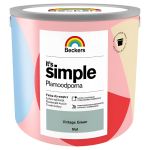 Beckers It's Simple to wodorozcieńczalna farba lateksowa przeznaczona do malowania ścian i sufitów wewnątrz pomieszczeń. Tworzy plamoodporną i hydrofobową powłokę o podwyższonej odporności na szorowanie i zmywanie. Produkt zapewnia dobre krycie oraz trwały efekt plamoodporności w pomieszczeniach narażonych na zabrudzenia.