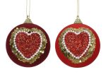 Bombka choinkowa w kształcie serca o średnicy 8 cm, wykonana z lekkiej pianki pokrytej warstwą aksamitu. Dekorowana koralikami oraz cekinami rozmieszczonymi dookoła, tworzy efektowną powierzchnię odbijającą światło. Konstrukcja z tworzywa PP i pianki zwiększa odporność na uszkodzenia podczas użytkowania.