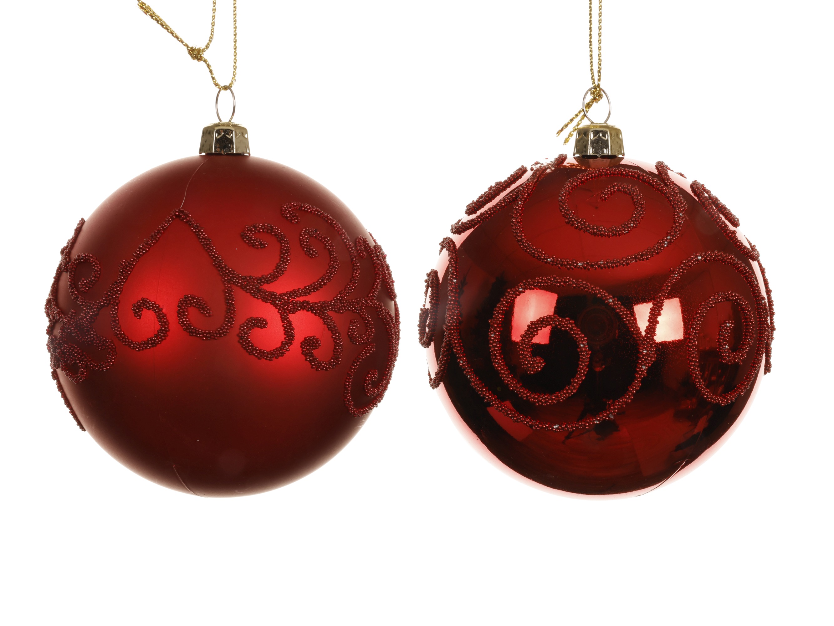 Bombka świąteczna 8cm styropianowa czerwona błyszcząco-matowa z koralikami dekoracyjnymi na nitce