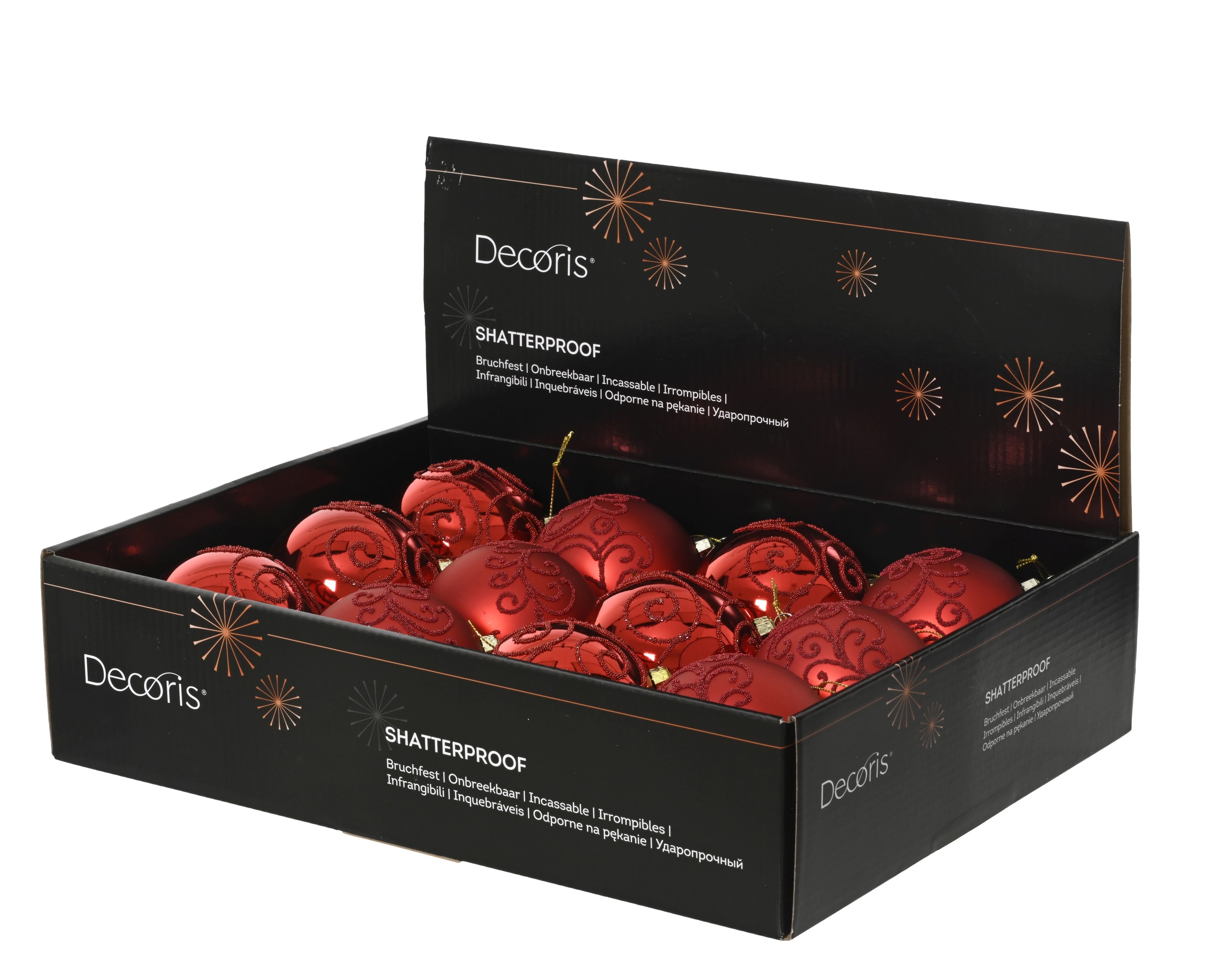 Bombka świąteczna o średnicy 8 cm wykonana z lekkiego polistyrenu, który zapewnia nietłukącą konstrukcję bezpieczną do domowych i komercyjnych dekoracji. Wykończenie łączy powierzchnię błyszczącą i matową oraz koraliki dekoracyjne nadające ozdobie atrakcyjny efekt wizualny. Produkt wyposażony jest w złotą metalową nakrętkę oraz nitkę umożliwiającą zawieszenie.
