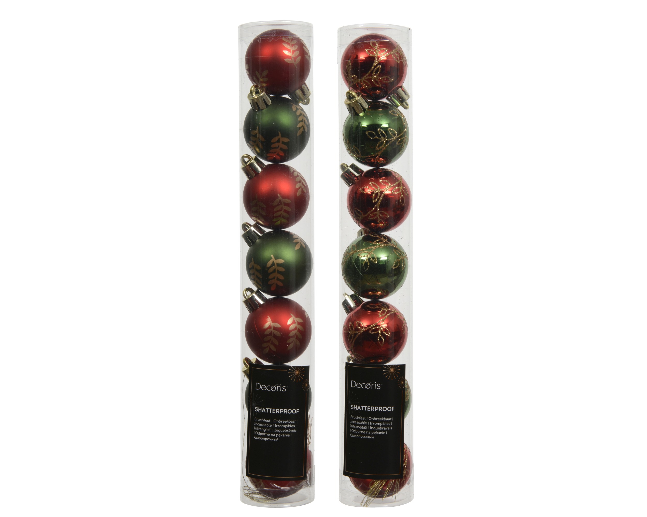 Bombki styropianowe mieszane błyszczące i matowe w kolorach czerwony świąteczny i sosnowa zieleń stanowią lekką i nietłukącą dekorację drzewka. W zestawie znajduje się 7 sztuk ozdób zapakowanych w rurkę PET. Powierzchnia części bombek pokryta jest brokatem, co nadaje subtelny połysk i świąteczny charakter.
