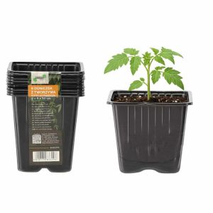 Doniczki Garden Line wykonane są z trwałego tworzywa sztucznego odpornego na wilgoć i uszkodzenia mechaniczne. Wymiary 9 x 9 x 10 cm sprawiają, że sprawdzają się podczas przygotowywania rozsady warzyw i roślin ozdobnych. Kwadratowa forma umożliwia ustawianie doniczek w rzędach, co ułatwia organizację przestrzeni uprawowej.