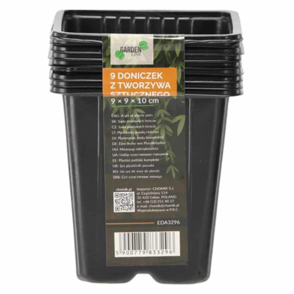 Doniczki plastikowe 9x9x10cm czarne Garden Line