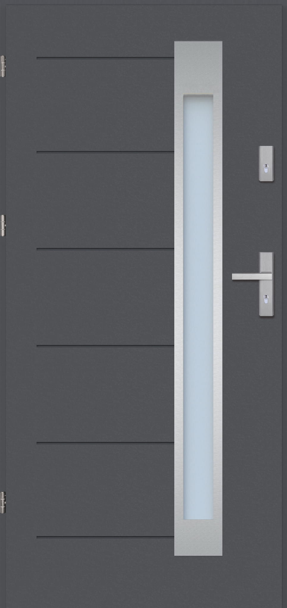 - wyposażenie: w zestawie ciepła ościeżnica drewniano-stalowa z rdzeniem z drewna klejonego, próg termiczny aluminiowy z uszczelką i blokerem izolacyjnym, klamka zestaw okuć AXA HAGA ++ INOX ( szyld dolny klamki z wkładką z kluczami + szyld górny z wkładko-gałką z kluczami )