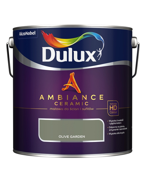 Farba ceramiczna Dulux Ambiance Ceramic Olive Garden 2,5L odporna na plamy i szorowanie do ścian i sufitów