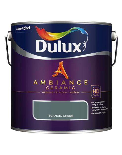 Farba ceramiczna Dulux Ambiance Ceramic Scandic Green 2,5L odporna na plamy i szorowanie do ścian i sufitów