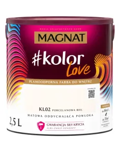 Farba lateksowa Magnat #kolorLove porcelanowa biel 2,5L matowa plamoodporna do wnętrz