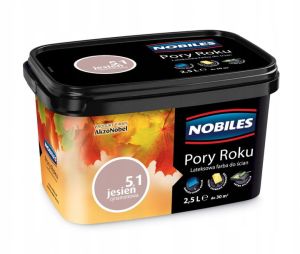 Nobiles Pory Roku lateksowa farba do ścian to kolekcja matowych farb dostępnych w innowacyjnych gamach kolorystycznych, przeznaczonych do dekoracyjnego malowania ścian i sufitów wewnątrz pomieszczeń. Farby z kolekcji Pory Roku tworzą powłoki o wysokich walorach dekoracyjnych, charakteryzujących się doskonałym kryciem, trwałością i czystością barw. Dzięki mikroporowatej strukturze umożliwiają oddychanie ścian. Farby Pory Roku zalecane są do podłoży cementowo-wapiennych, betonowych, gipsowych i kartonowo- gipsowych, również wcześniej malowanych farbami emulsyjnymi. Można zmywać z nich lekkie zabrudzenia.