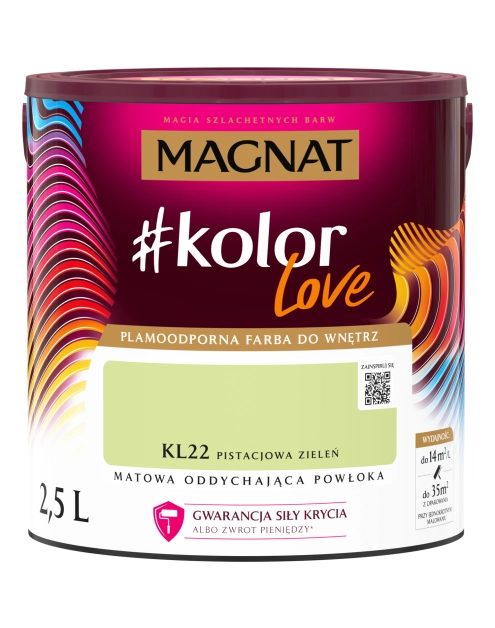 Farba lateksowa Magnat #kolorLove Pistacjowa Zieleń 2,5L matowa plamoodporna do wnętrz