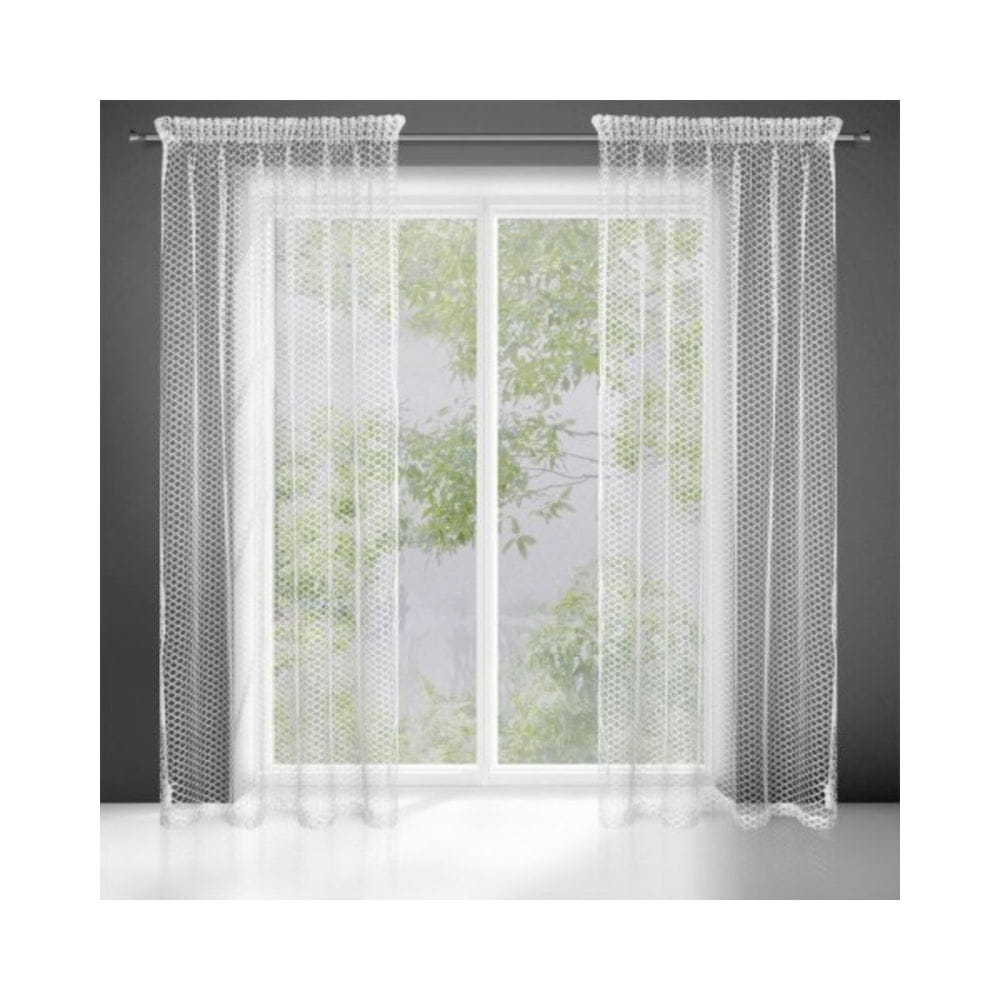 Nowoczesna firana z nieregularnej siateczki o subtelnym połysku i różnej wielkości oczek, która idealnie sprawdzi się w zarówno w nowoczesnych, jak i aranżacjach w stylu retro oraz vintage. Firana może także zastąpić delikatną zasłonę.
