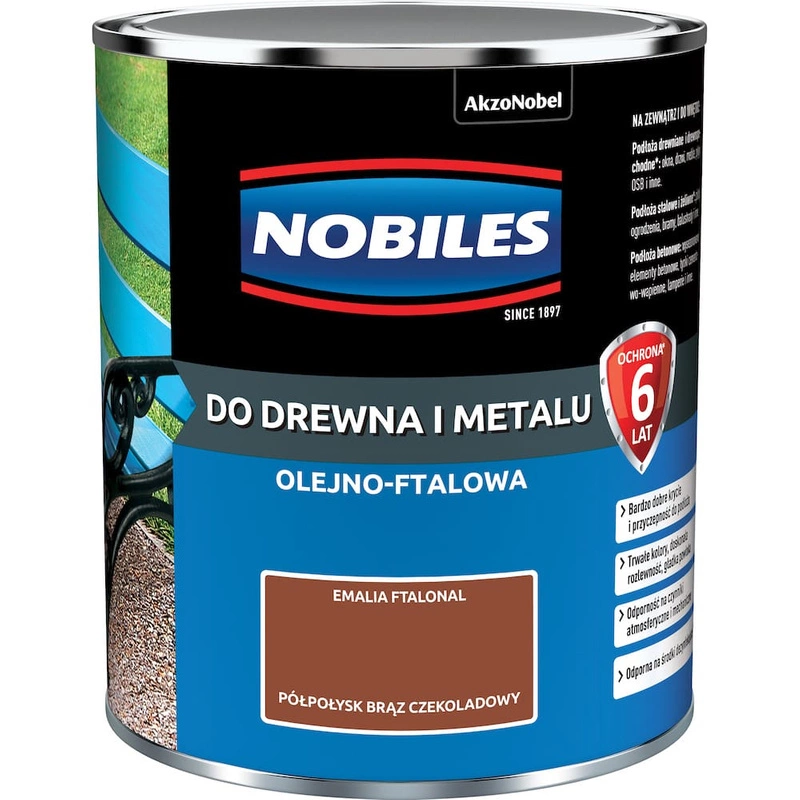 Emalia alkidowa Nobiles Ftalonal Brąz 0,7L półpołysk do drewna metalu i betonu nawierzchniowa do wnętrz i na zewnątrz