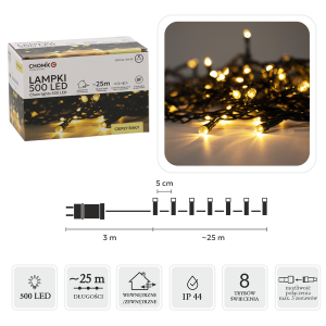 - 500 diod LED w ciepłej bieli rozmieszczonych co 5 cm