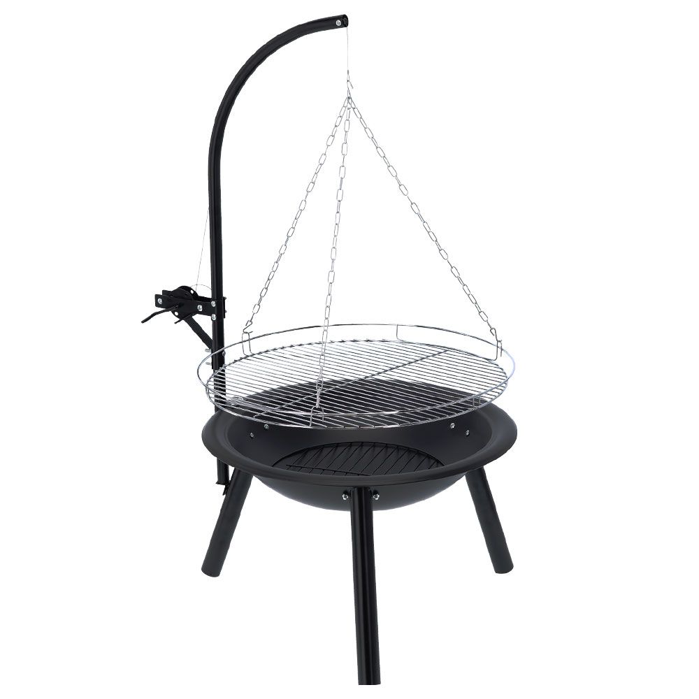 Grill węglowy wiszący z paleniskiem to konstrukcja przeznaczona do przygotowywania potraw nad otwartym ogniem. System zawieszenia rusztu umożliwia grillowanie w warunkach zbliżonych do tradycyjnego ogniska, przy jednoczesnym zachowaniu kontroli nad temperaturą.