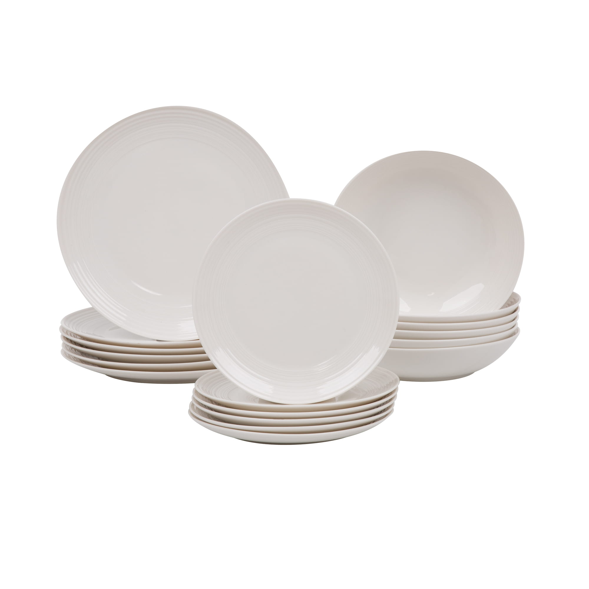 Zestaw talerzy obiadowych dla 6 osób z serii Linea marki Ambition. Seria naczyń Linea charakteryzuje się uniwersalnym, prostym stylem, z nowoczesnym, subtelnym akcentem. Naczynia charakteryzują się delikatnym, falowanym rantem. Występują w trzech podstawowych kolorach (biały, piaskowy oraz szary), które można ze sobą łączyć, tworząc piękne kompozycje. Będą ciekawą alternatywą dla klasycznych naczyń używanych na co dzień.