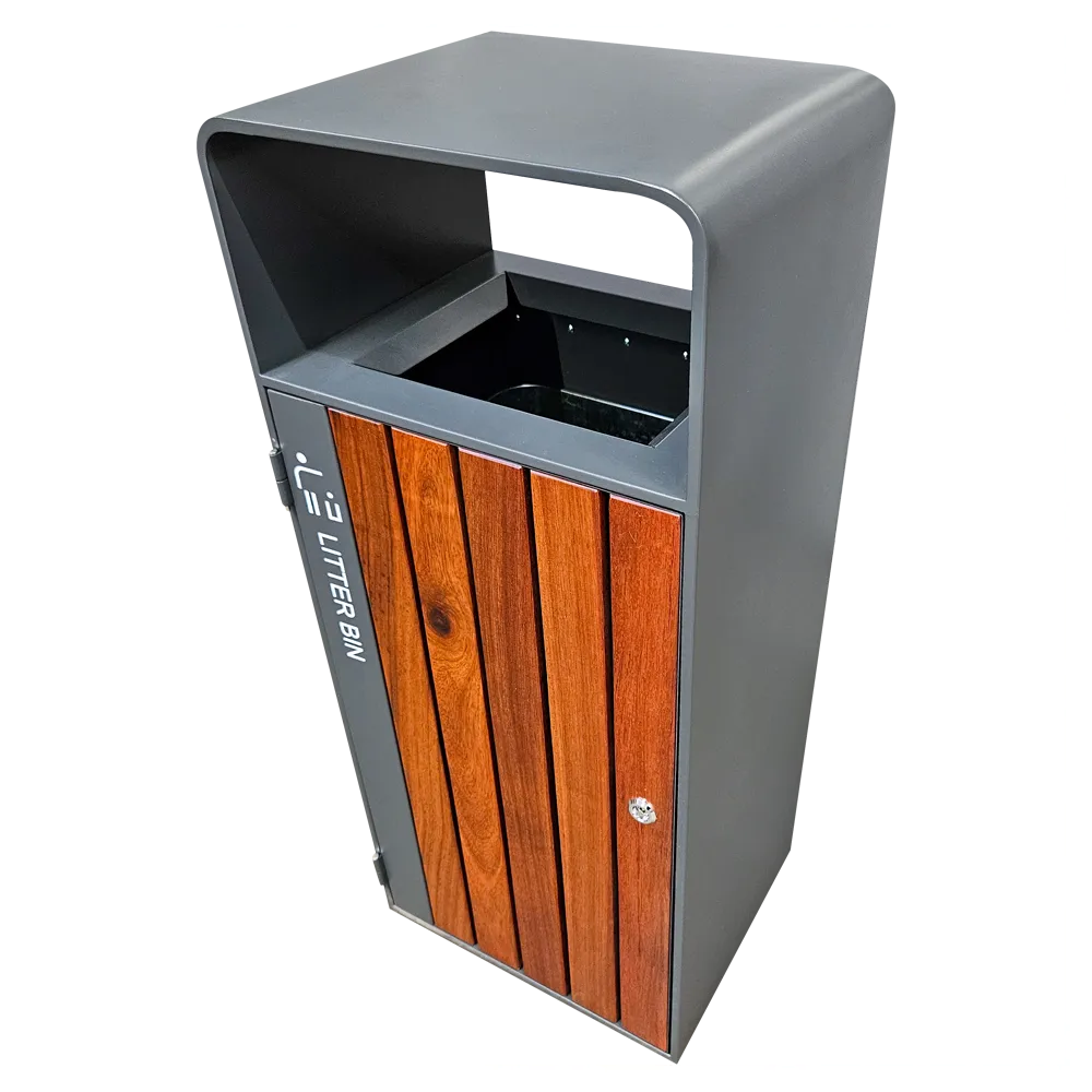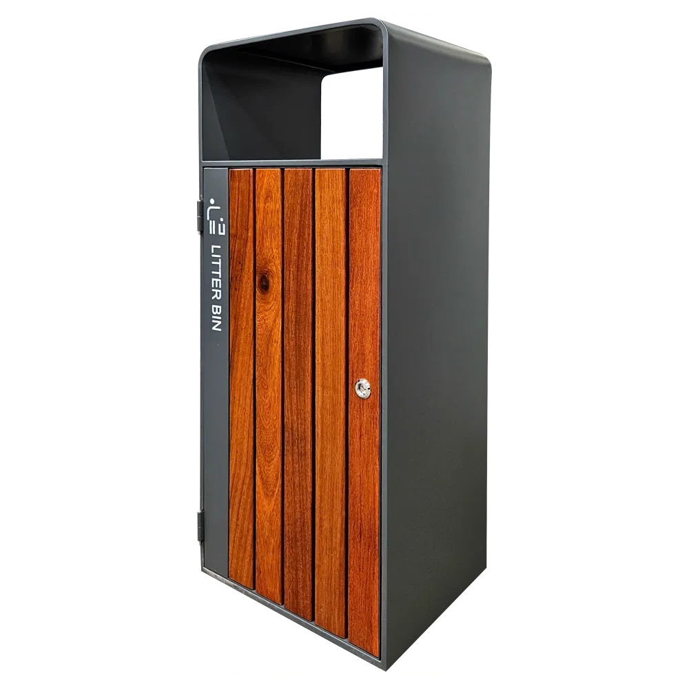 Kosz na śmieci ogrodowy szary 55L stal nierdzewna bez popielniczki z drewnem jatoba Serpent Tree Exclusive
