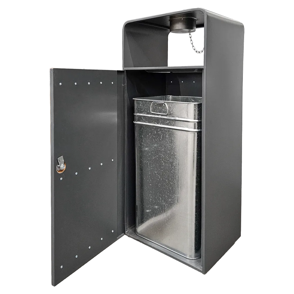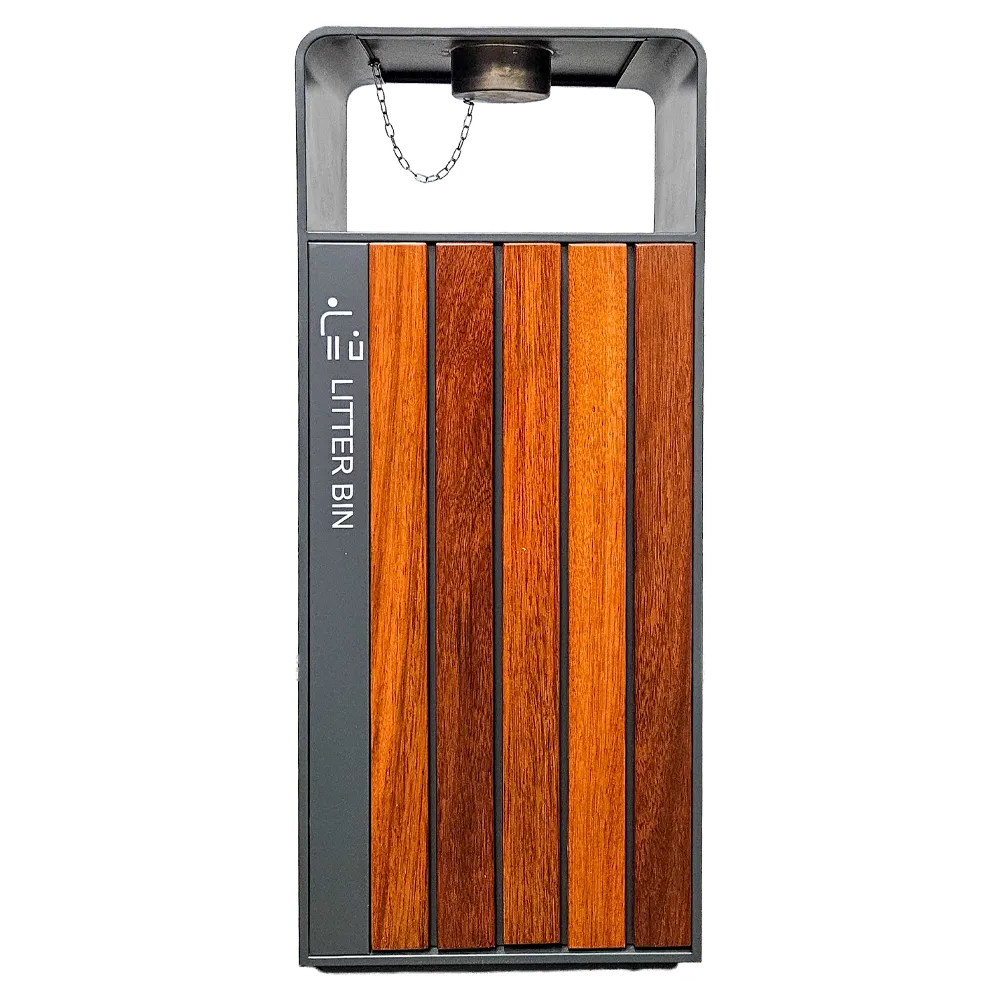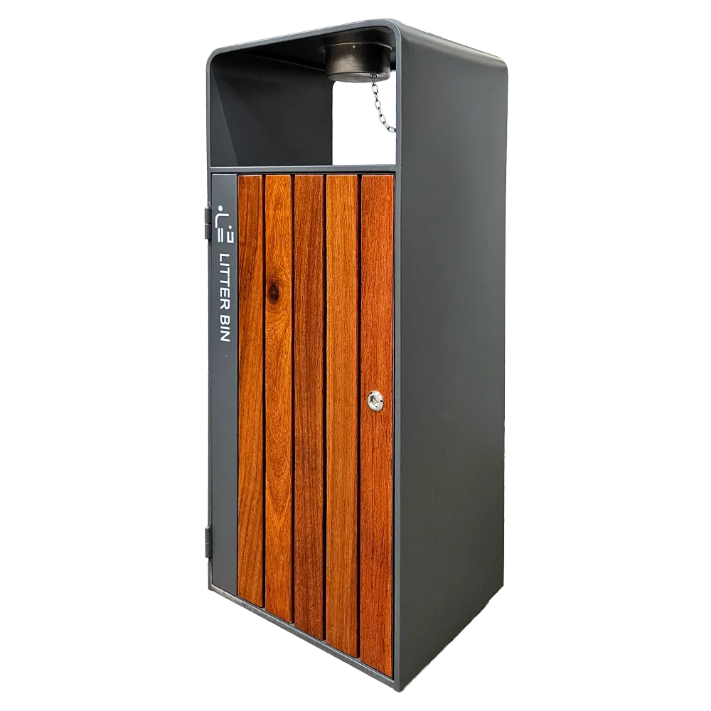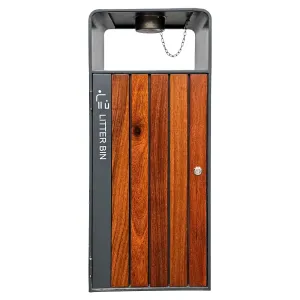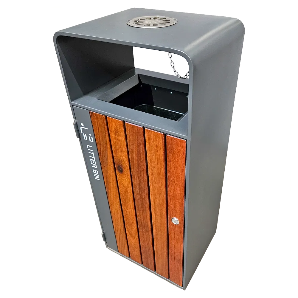 Kosz na śmieci ogrodowy szary 55L stal nierdzewna z popielniczką i drewnem jatoba Serpent Tree Exclusive