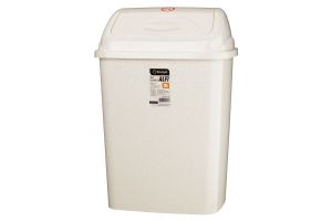 Kosz na śmieci wykonany z tworzywa sztucznego w kolorze beżowym. Idealne rozwiązanie do każdych pomieszczeń kuchnia, łazienka, biuro, szkoła, salony SPA, itp. Uchylna pokrywa sprawia, że zawartość pojemnika jest zawsze zamknięta i nie jest widoczna.