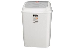 Kosz na śmieci wykonany z tworzywa sztucznego w kolorze beżowym. Idealne rozwiązanie do każdych pomieszczeń kuchnia, łazienka, biuro, szkoła, salony SPA, itp. Uchylna pokrywa sprawia, że zawartość pojemnika jest zawsze zamknięta i nie jest widoczna.