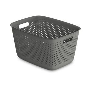 Nowa seria OpenStore została stworzona z myślą o porządkowaniu i ozdabianiu różnych wnętrz, jak spiżarnie, garderoby czy pralnie. Jej minimalistyczny design sprawia, że doskonale wpasowuje się nawet w elegancki salon. Specjalnie zaprojektowane uchwyty ułatwiają szybkie wyciąganie i przekładanie pojemników z półek oraz przenoszenie ich między pomieszczeniami. Dzięki różnym rozmiarom dostępnych pojemników OpenStore, organizacja staje się łatwa, zapewniając każdej rzeczy od ubranek dla dzieci po środki chemiczne – odpowiednie miejsce. Można się zainspirować ich szeroką gammą kolorów oraz kształtem. Dokupując pokrywę do kosza OpenStore dajemy im nowy, niepowtarzalny charakter dzięki możliwości układania ich dowolnie jeden na drugim, aby zoptymalizować przestrzeń oraz uzyskać stylowy i estetyczny design.