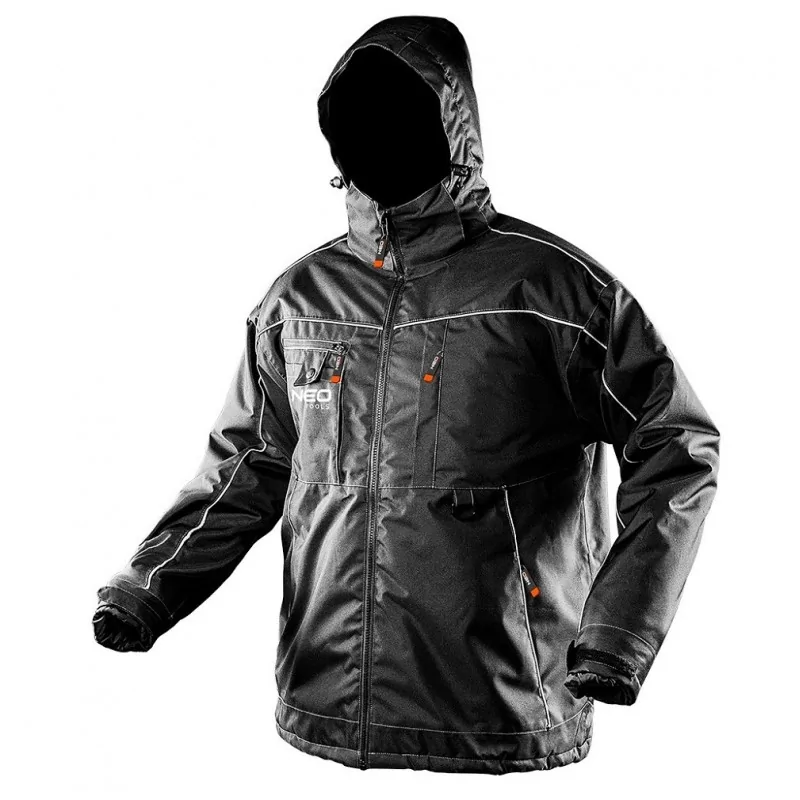 Zimowa kurtka robocza NEO jest wiatroszczelna i wodoodporna. Jest bardzo ciepła, a dzięki użytemu materiałowi również lekka i trwała. Nie ogranicza zakresu ruchu. Wyposażona w odpinany i regulowany kaptur oraz wysoki kołnierz chroniący szyję. Rękawy posiadają regulowaną gumkę oraz dodatkowe wewnętrzne mankiety, które zapobiegają przedostawaniu się wiatru i deszczu. Dolny szew kurtki posiada zintegrowane, regulowane ściągacze, które pozwalają na utrzymanie ciepła ciała przy zachowaniu maksymalnego komfortu użytkowania. Kurtka posiada wiele przydatnych kieszeni, w tym większą niż w poprzednich wersjach produktu kieszeń na smartfona. Wewnętrzna kieszeń i wielofunkcyjny haczyk pozwalają mieć zawsze pod ręką niezbędne przedmioty. Obszary odblaskowe zapewniają lepszą widoczność użytkownika. Jakość produktu gwarantowana jest europejskim certyfikatem CE oraz procesem produkcyjnym zgodnym z normą EN ISO 13688:2013. Marka NEO wychodzi naprzeciw oczekiwaniom profesjonalistów.