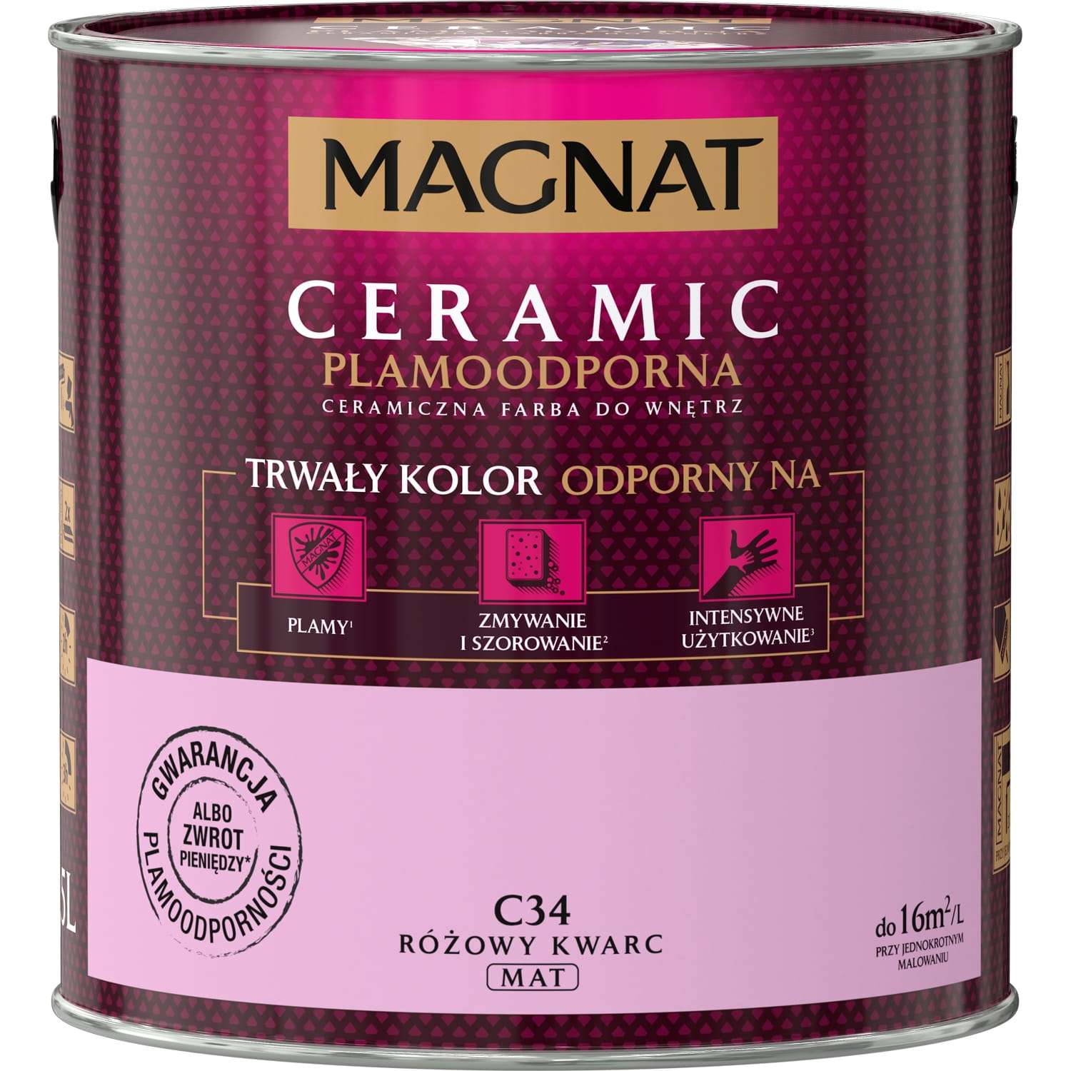 Farba Magnat Ceramic C34 Różowy Kwarc 2,5L do ścian i sufitów odporna na plamy i szorowanie do wnętrz