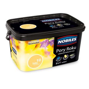 Nobiles Pory Roku lateksowa farba do ścian to kolekcja matowych farb dostępnych w innowacyjnych gamach kolorystycznych, przeznaczonych do dekoracyjnego malowania ścian i sufitów wewnątrz pomieszczeń. Farby z kolekcji Pory Roku tworzą powłoki o wysokich walorach dekoracyjnych, charakteryzujących się doskonałym kryciem, trwałością i czystością barw. Dzięki mikroporowatej strukturze umożliwiają oddychanie ścian. Farby Pory Roku zalecane są do podłoży cementowo-wapiennych, betonowych, gipsowych i kartonowo- gipsowych, również wcześniej malowanych farbami emulsyjnymi. Można zmywać z nich lekkie zabrudzenia.