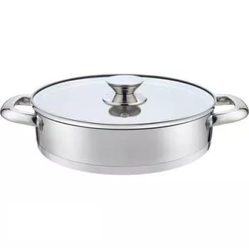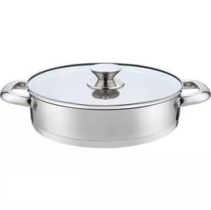 Patelnia Chef 26cm marki Ambition, wykonany został ze stali nierdzewnej. Ergonomiczna rączka również została wykonana ze stali nierdzewnej .Garnki z serii Chef przeznaczone są do użytku na wszystkich rodzajach kuchenek, także indukcyjnych. Wykonany ze stali nierdzewnej, dzięki czemu szybciej nagrzewa się, co powoduje mniejsze zużycie energii. Garnki posiadają grube kapsułowe dno zapewniające szybkie i równomierne nagrzewanie naczynia oraz grube ścianki, są łatwe do utrzymania w czystości, wygodne i praktyczne. Idealnie gładka błyszcząca powierzchnia uniemożliwia rozwój mikroorganizmów, niezwykle łatwo utrzymać je w czystości i zachować ich nienaganny wygląd.