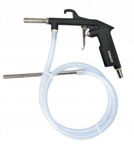 Profesjonalny pistolet do piaskowania Stanley z wężem to wysokiej jakości narzędzie do oczyszczania powierzchni ze starych powłok lakierniczych, rdzy oraz innych zabrudzeń. Pistolet można również używać do kształtowania powierzchni. Oczyszczanie odbywa się za pomocą strumienia sprężonego powietrza i materiału ściernego. Wykonany jest z wytrzymałej stali, pokrytej matową, antypoślizgową farbą. Sposób montażu do węża: na szybkozłączkę 1/4".