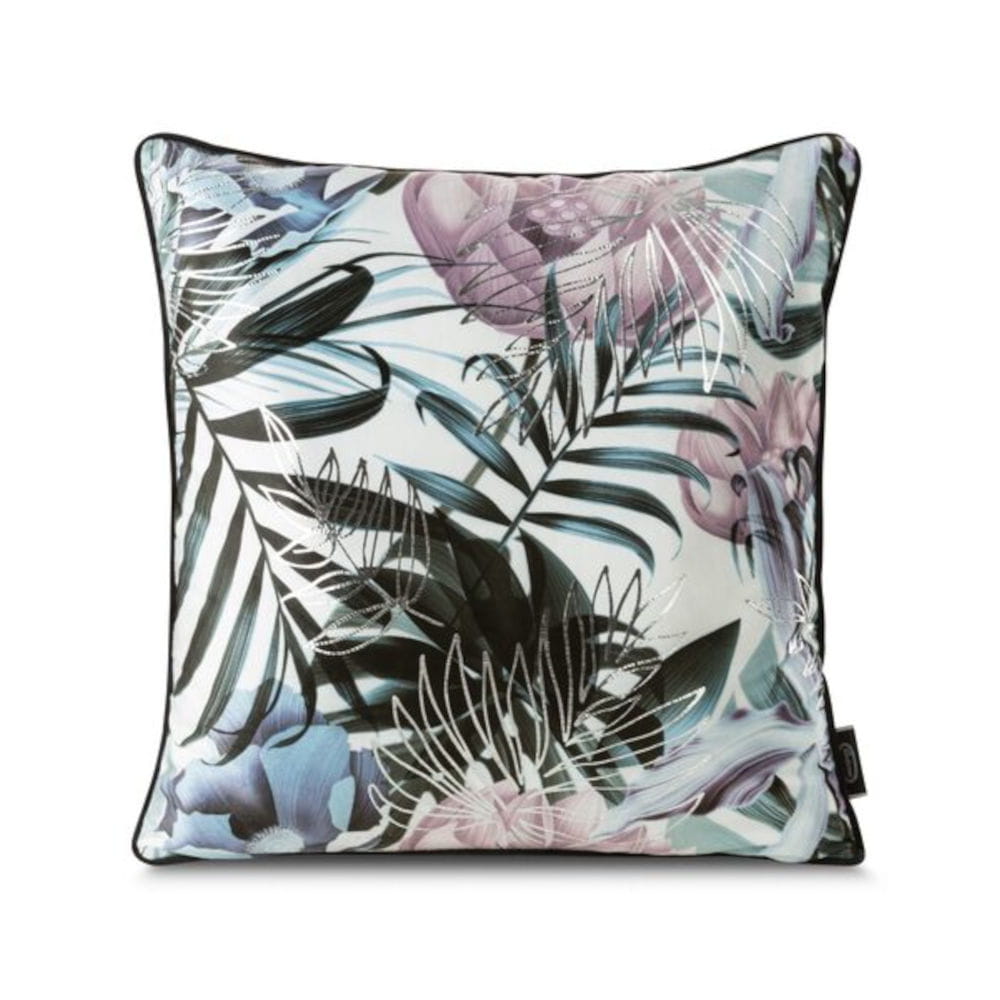 Poszewka z lamówką wykonana z delikatnego i miłego w dotyku welwetu. Dekorowana nadrukiem z motywem egzotycznych liści to modny dodatek,który pozwala w prosty i szybki sposób upiększyć każde wnętrze Materiał z którego wykonana jest poszewka nie kurczy się po praniu i nie wymaga pracochłonnego prasowania. Zamek błyskawiczny wszyty w jednym z boków umożliwia szybką zmianę poszewki. Poszewkę należy prać w maksymalnej temperaturze 30°C.