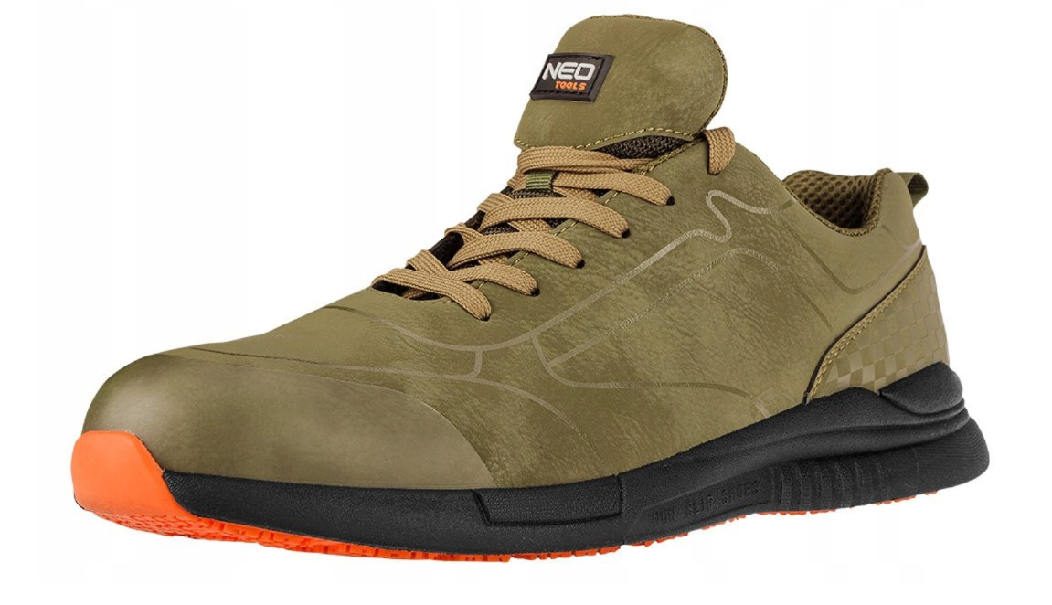 Buty NEO TOOLS charakteryzują się odpornością na poślizg na podłożu ceramicznym pokrytym SLS oraz na podłożu ze stali pokrytym glicerolem.