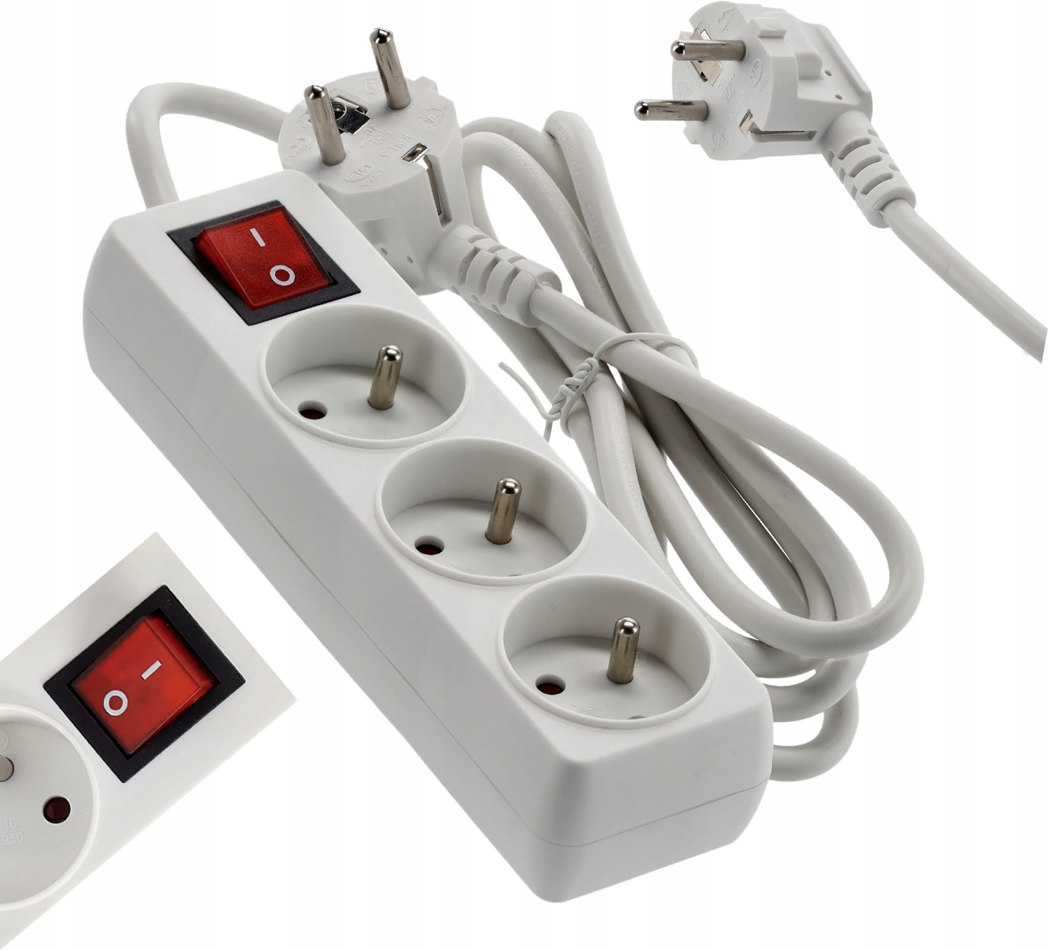 Przedłużacz z wyłącznikiem 3 gniazda 5m biały