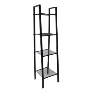 Wąski regał z czterema półkami z ażurowej siateczki. Wykonany został ze stali malowanej na kolor czarny. Będzie idealnym rozwiązaniem do przechowywania i wyeksponowania różnych przedmiotów w łazience, salonie czy każdym innym miejscu w Twoim domu. Ten wąski regał oferuje dużą pojemność i solidną konstrukcję, gwarantując nie tylko funkcjonalność, ale także estetyczny wygląd. Wymaga samodzielnego skręcenia.