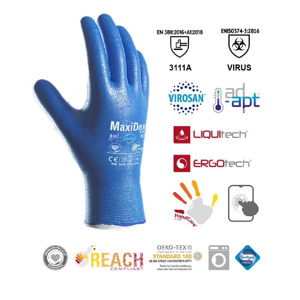 Rękawice ochronne ATG MaxiDex 9 hybrydowe nitrylowe nylonowe AD-APT VIROSAN wodoodporne