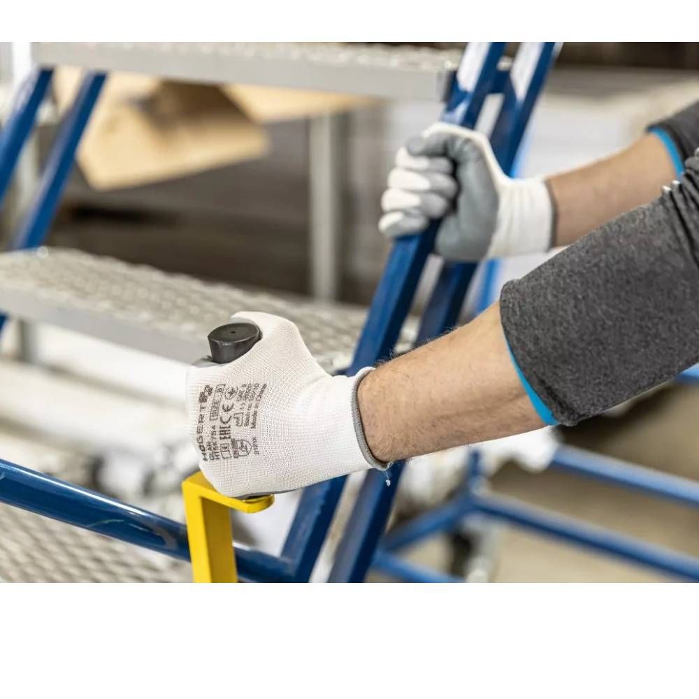 Rękawice robocze GLAN 11 powlekane nitrylem białe szare elastyczne do prac precyzyjnych