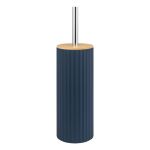 Stylowa szczotka toaletowa z serii Andora. Wykonana z przyjemnego w dotyku tworzywa w kolorze granatowym. Ozdobne elementy z prawdziwego bambusa dodają jej naturalnego uroku. Część czyszcząca wykonana została z tworzywa w kolorze czarnym. Wyposażona w pokrywkę prezentuje się bardzo schludnie.