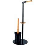 Praktyczny stojak na papier połączony ze szczotką WC, nie wymaga montowania. Połączenie doskonałej jakości tworzywa sztucznego z elementami drewnianymi. Nowoczesny charakter podkreśla prosta forma i czarne aksamitne wykończenie. Łatwy w utrzymaniu czystości.