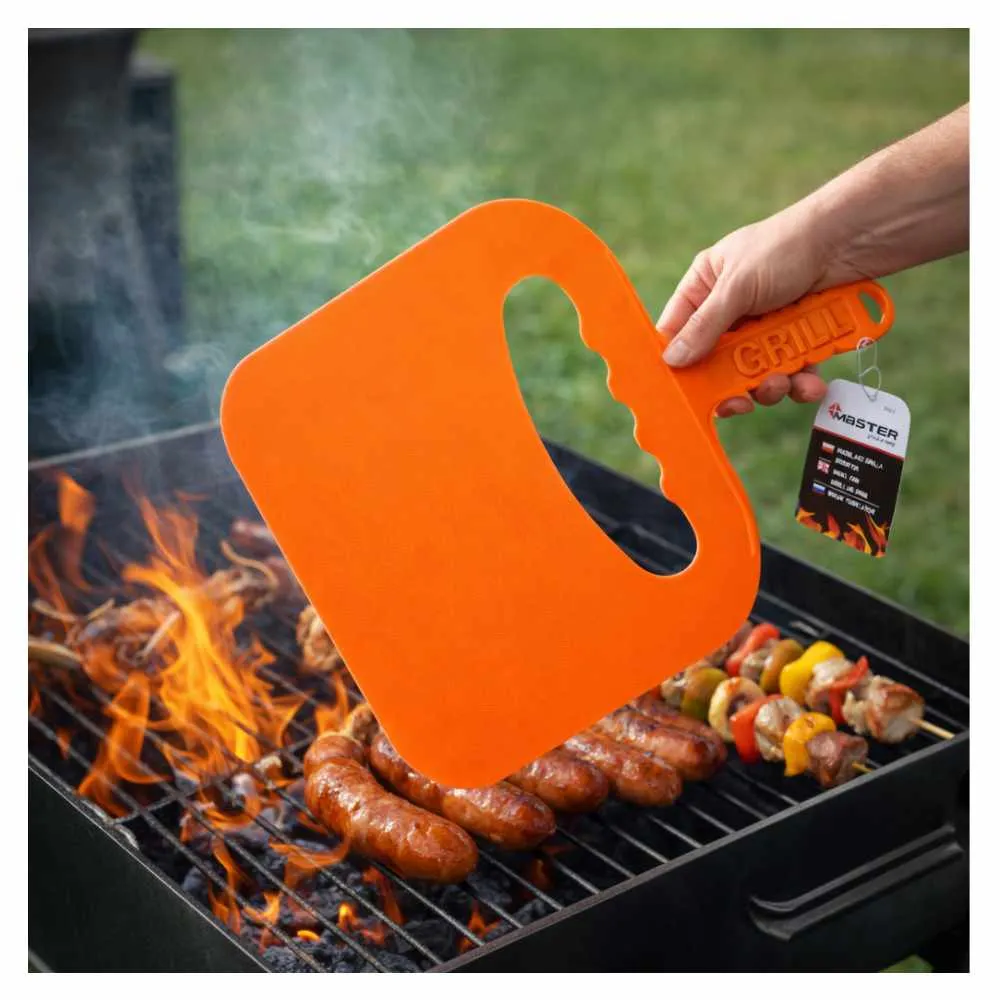 Wachlarz do rozpalania grilla Master Grill wykonany z tworzywa sztucznego przeznaczony jest do wspomagania procesu rozpalania węgla drzewnego. Szeroka powierzchnia robocza umożliwia efektywne zwiększenie przepływu powietrza, co przyspiesza powstawanie żaru. Lekka konstrukcja pozwala na wygodne użytkowanie.