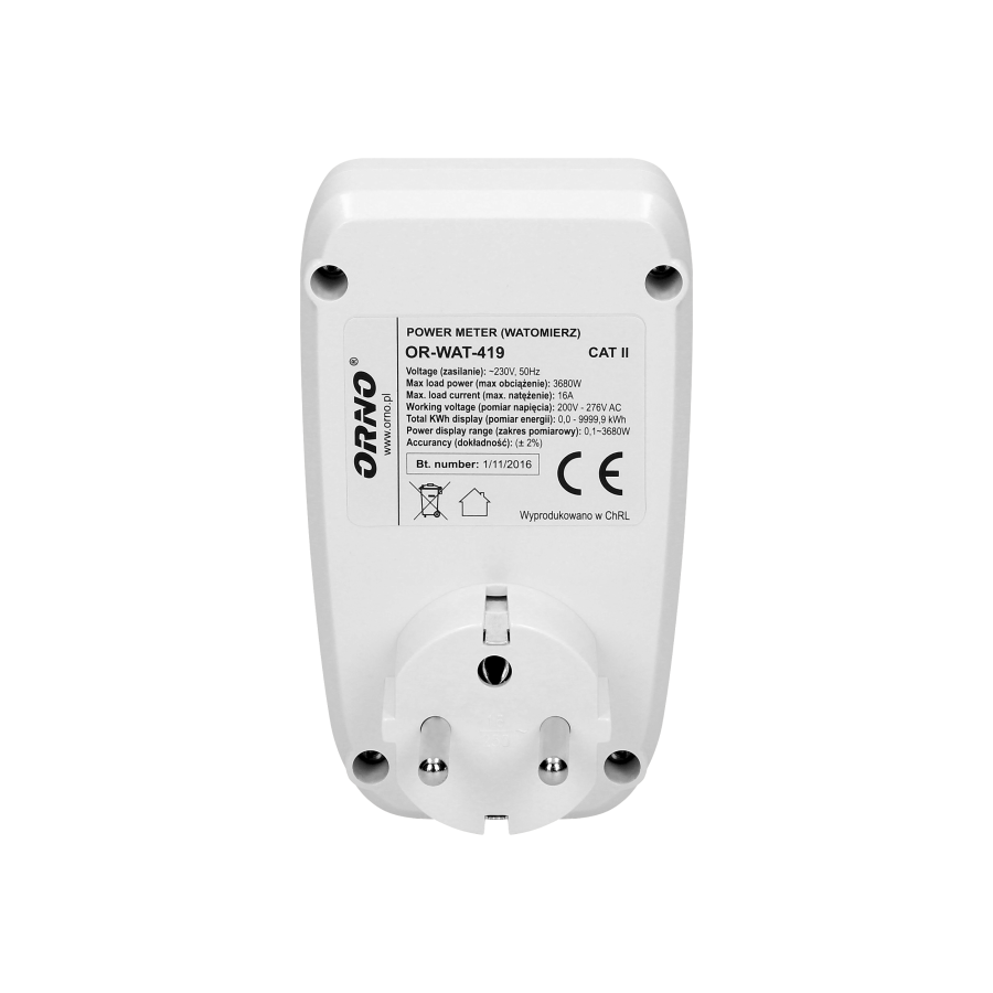 Watomierz Orno OR-WAT-419 kalkulator energii elektrycznej z wyświetlaczem LCD do gniazdka