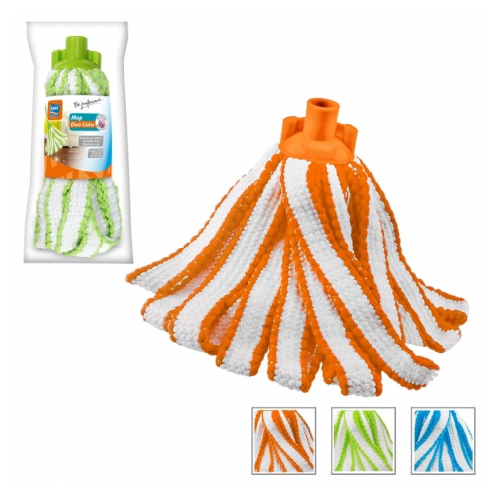 Zapas do mopa paskowego z mikrofibry DUO COLOR to wymienny wkład przeznaczony do utrzymania czystości podłóg. Konstrukcja paskowa ułatwia zbieranie zabrudzeń z różnych powierzchni twardych. Mikrowłókna pracują na sucho i na mokro, pozwalając na efektywne usuwanie kurzu i drobnych zanieczyszczeń.