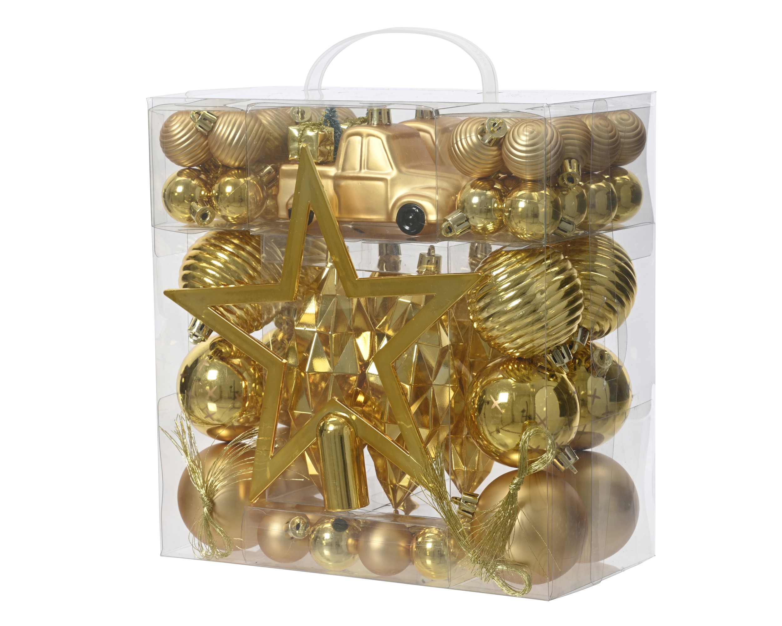 Zestaw bombki choinkowe mix różne kształty nietłukące 67el.