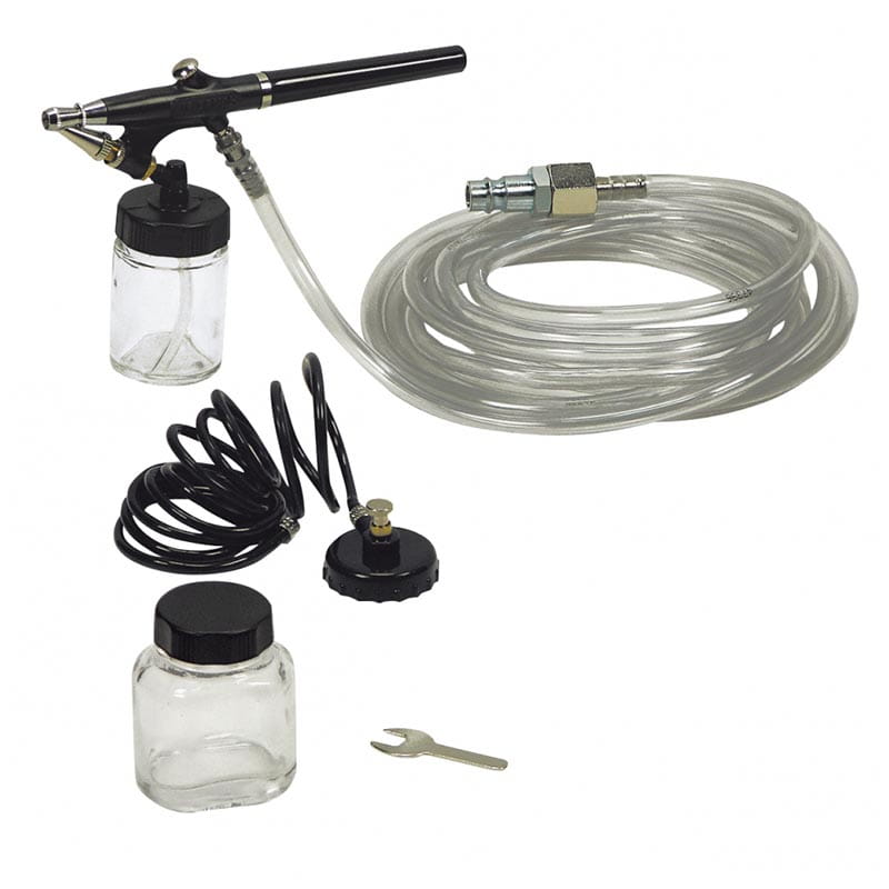 Ten zestaw jest specjalnie zaprojektowany w celu zapewnienia równego i kontrolowanego rozkładu farby za pomocą sprężonego powietrza. Niezależnie od tego, czy chcesz zrealizować dzieła artystyczne, doskonały makijaż, odmalowanie pojazdów lub odnawiania mebli, ten zestaw spełnia wszystkie Twoje potrzeby. Zestaw zawiera pistolet z aerografem z wąż, wąż spiralny, który gwarantuje swobodę ruchu, dwa różne zbiorniki farby i wielofunkcyjny klucz. Idealny dla artystów, artystów makijażu, rzemieślników, projektantów, opryskiwaczy farb samochodowych i wielu innych.