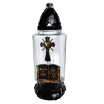 Znicz księga Z1240 to klasyczny model wykonany z tradycyjnego szkła kryształowego o wysokości 30 cm. Cechuje go symboliczny kształt otwartej księgi oraz dekoracyjny krzyż na froncie. Podstawa i kapturek z trwałego tworzywa sztucznego chronią wnętrze przed wiatrem i deszczem, zapewniając długie użytkowanie.
