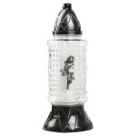 Znicz szklany Z-217 z wkładem parafinowym przezroczysty z tłoczeniem róża